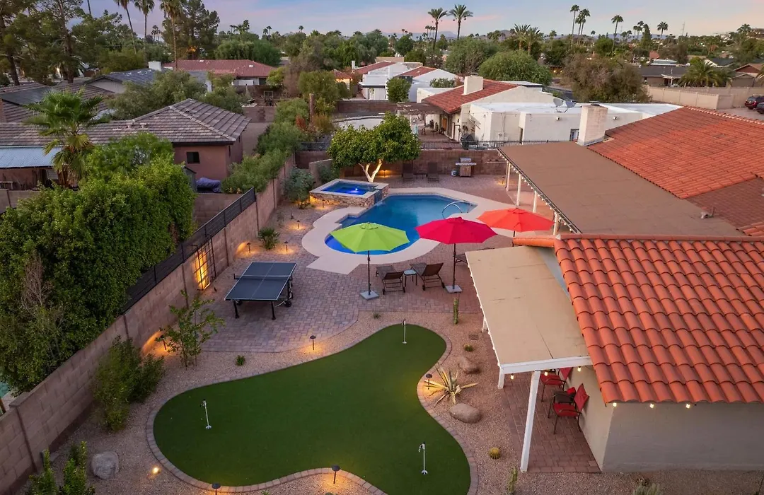 Moon Valley-Pool Spa Foosball Ping Pong Putput villa beschikt over een ingerichte keuken met koffie- en theevoorzieningen, een koelkast, een oven om zelf maaltijden te maken. De dichtstbijzijnde luchthaven is Phoenix Sky Harbor, op 30 km van de 2-badkamer villa.