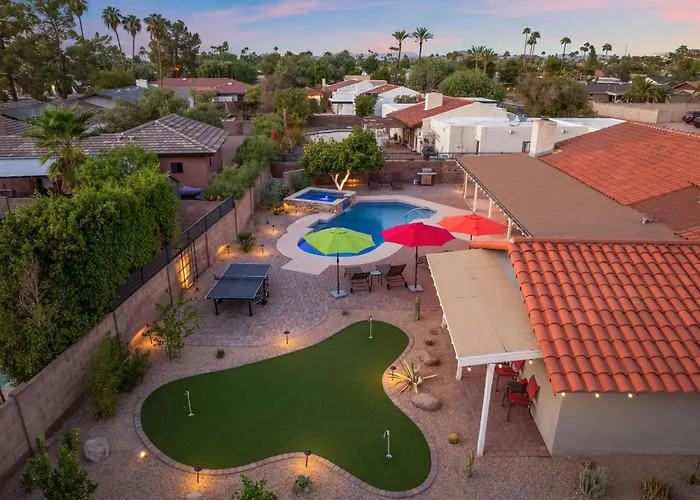 Deze 2-slaapkamer Moon Valley-Pool Spa Foosball Ping Pong Putput Phoenix villa bevindt zich in de wijk North Mountain in Phoenix, op 7 km van het Kasteel N' Coasters, en beschikt over een privézwembad waar gasten kunnen ontspannen. Gasten kunnen genieten van paardrijden en fietsen in het vakantiehuis, gelegen op 15 minuten rjden van Martin Auto Museum.